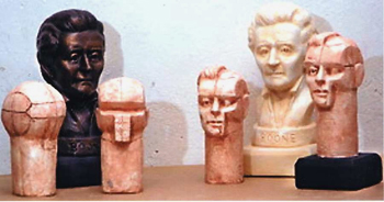 Robert Toth and his newest project, a sculpture of Daniel Boone: the beginning sculpture and the finished piece. Photo by Sarah Enfiedjian / Salisbury Post.One might think that at some point an artist as successful as Robert Toth would want to slow down a bit and take it easy.