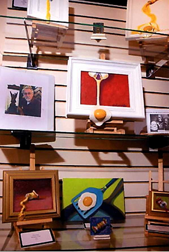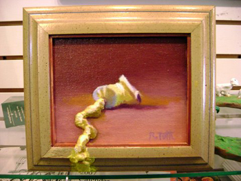 Toth has also been hard at work - although he might describe it as play - on a series of paintings he calls his "Oozing Series," avaliable at the Fine Frame Gallery and on his web site, www.RobertToth.com.The three-dimensional series is a departure from his academic work. One of the works depicts a hand squeezing a tube of oil paint on to a palette. Other works feature fried eggs.